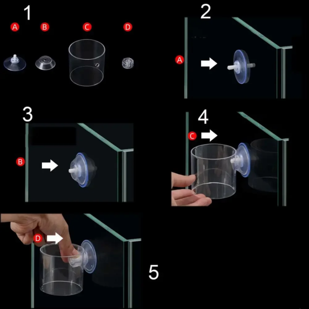 Fácil de instalar: El acuario con anillo de alimentación de peces es fácil de instalar y operar. Solo es necesario sujetar el comedero con una ventosa y una tuerca. Asegúrese de que cada pez pequeño pueda comer comida para evitar que los peces menos amigables agarren la comida de otras.