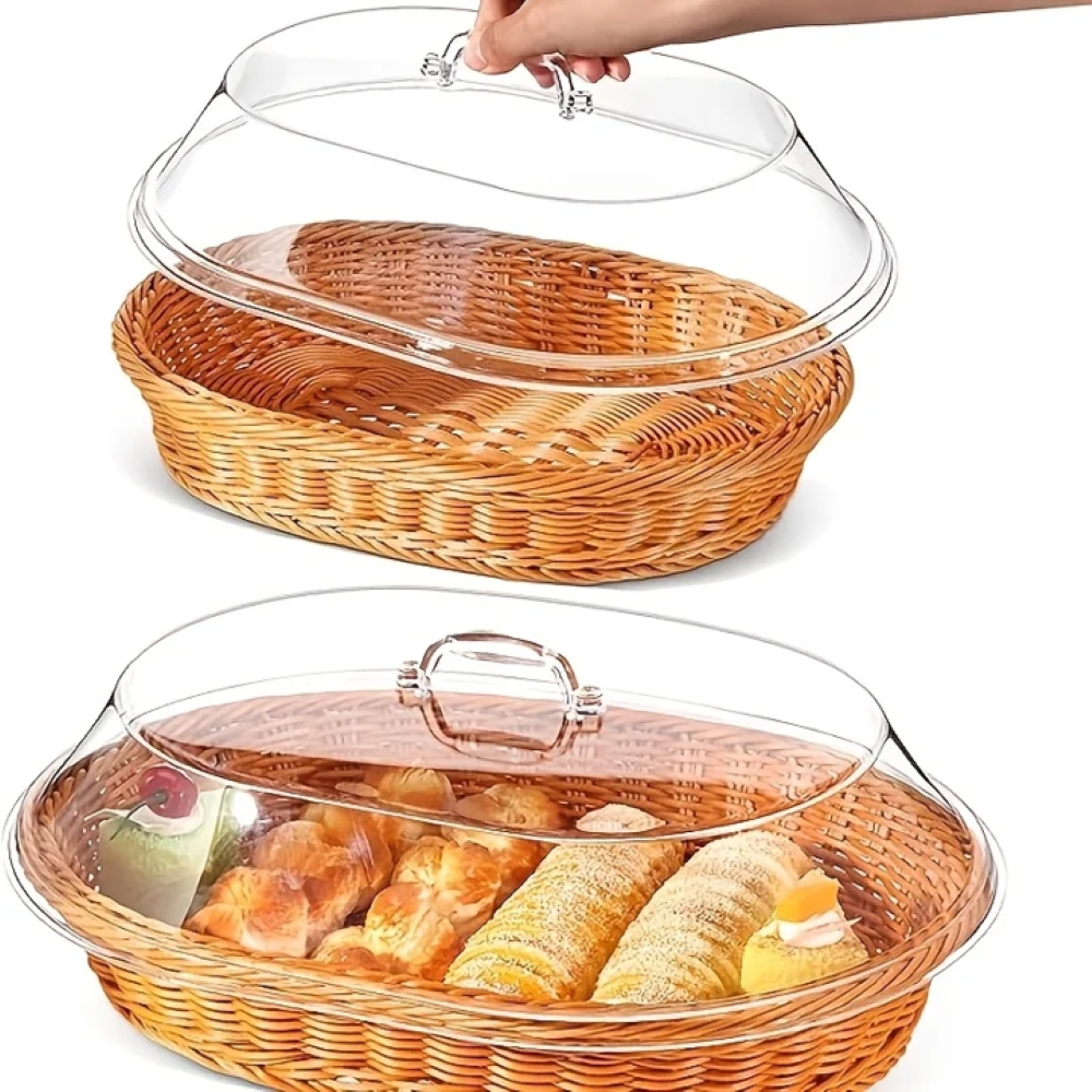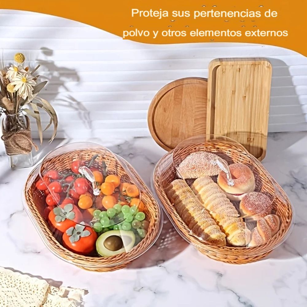1 * Cesta de pan de Mimbre con tapa Acrílica