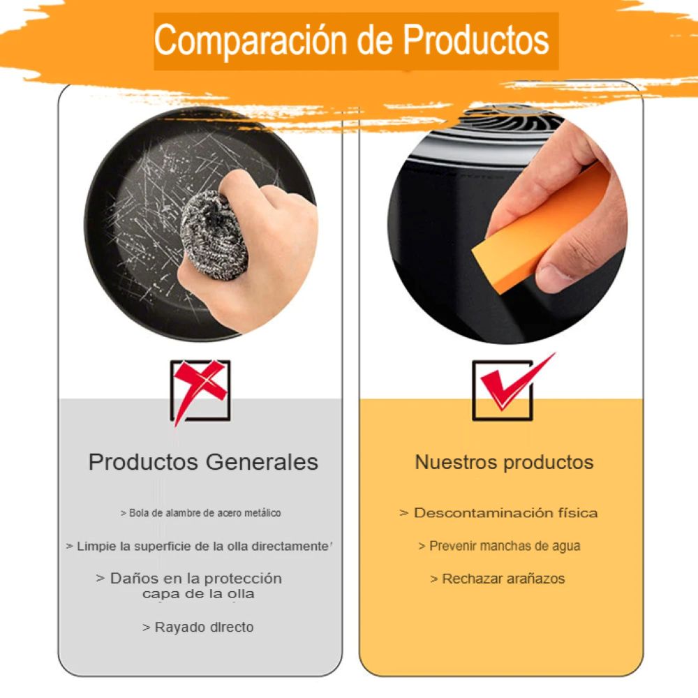 2. Sin rayones: Los productos de limpieza generales limpian directamente la superficie del cuerpo de la olla, causando rayones directamente, mientras que la goma para limpieza utiliza una eliminación física de manchas para evitar manchas de agua, proteger la capa protectora del cuerpo de la olla y rechazar rayones.