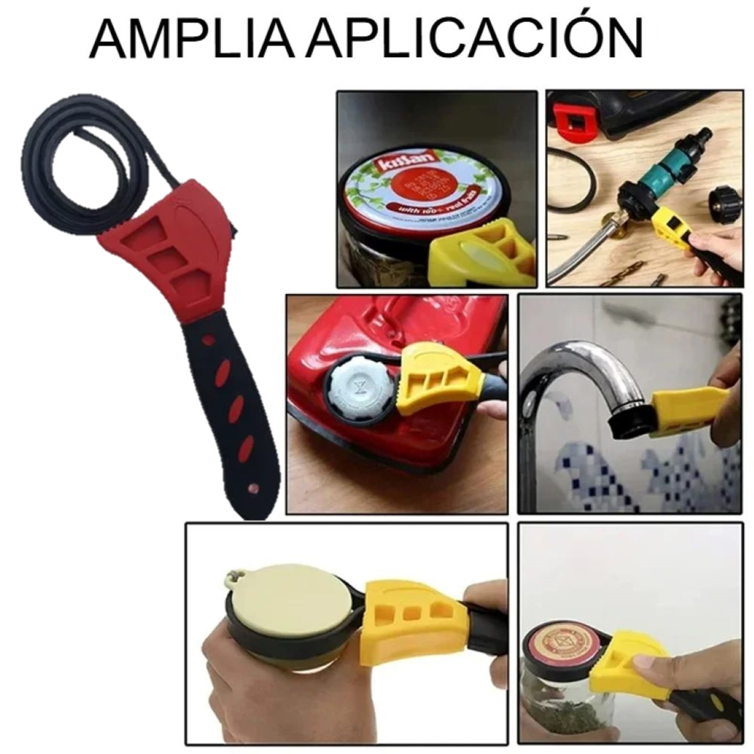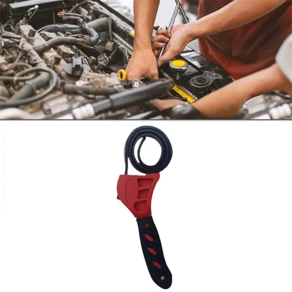 La correa flexible se adapta a cualquier forma, suelta, apretada, para objetos que requieren más tensión, como filtros de aceite, se recomienda una llave de goma grande, mientras que una llave más pequeña es perfecta para quitar tuercas, pernos y tapas. Esperar.