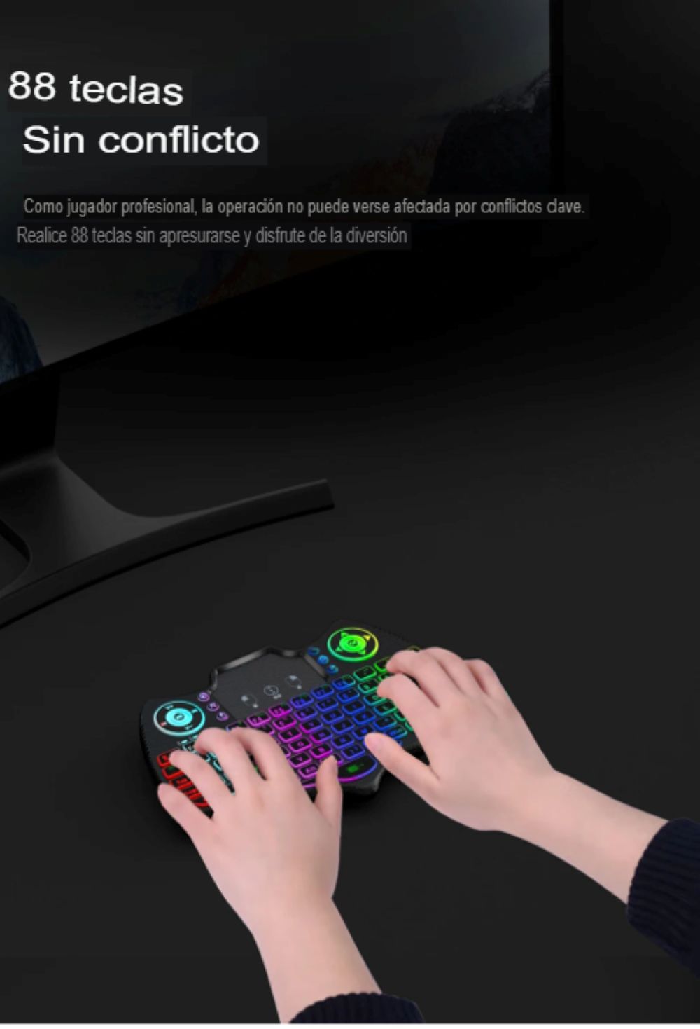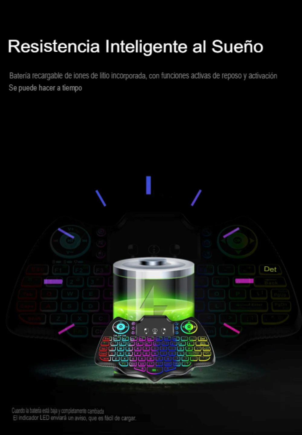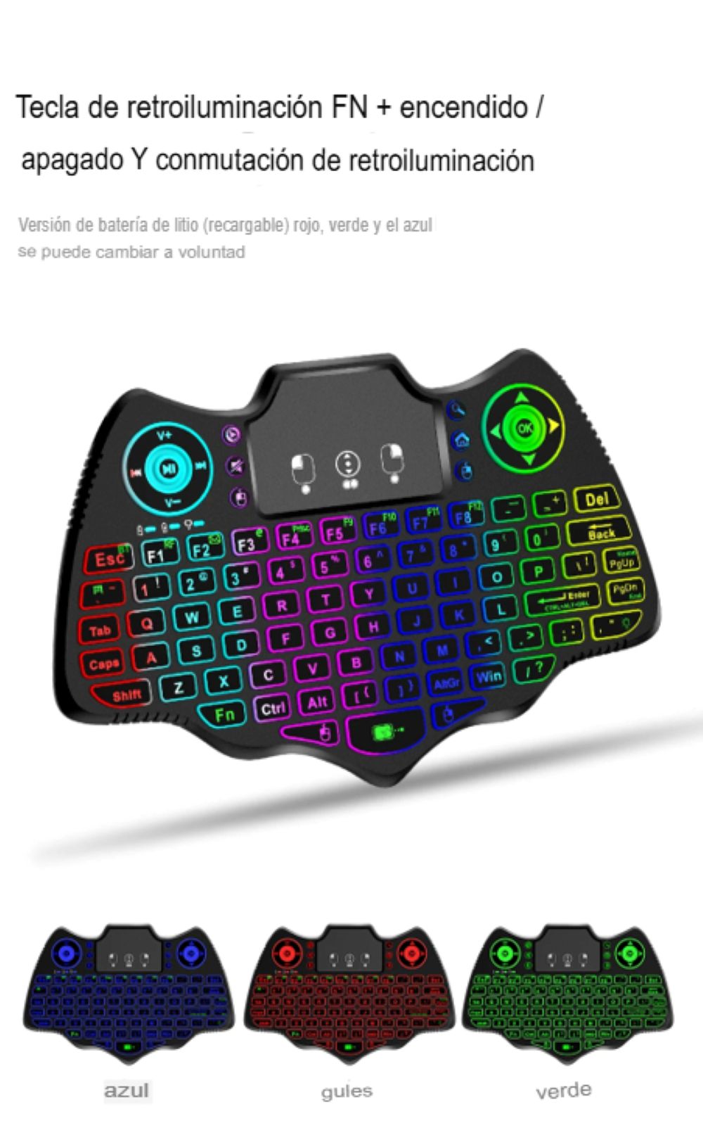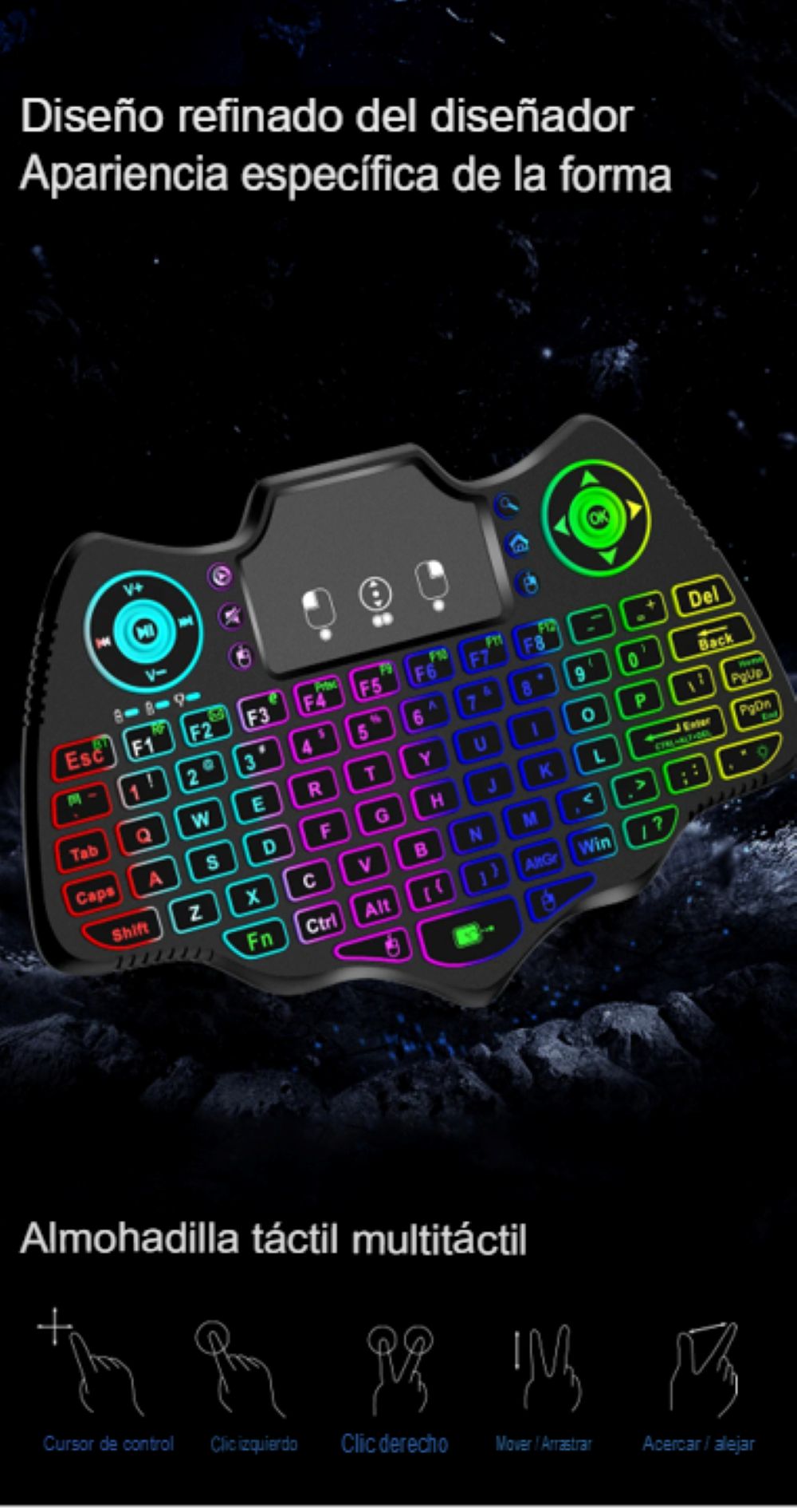 Tipo de luz de fondo multicolor: El teclado cuenta con una luz de fondo multicolor, permitiendo una visualización clara de las teclas en cualquier condición de luz.