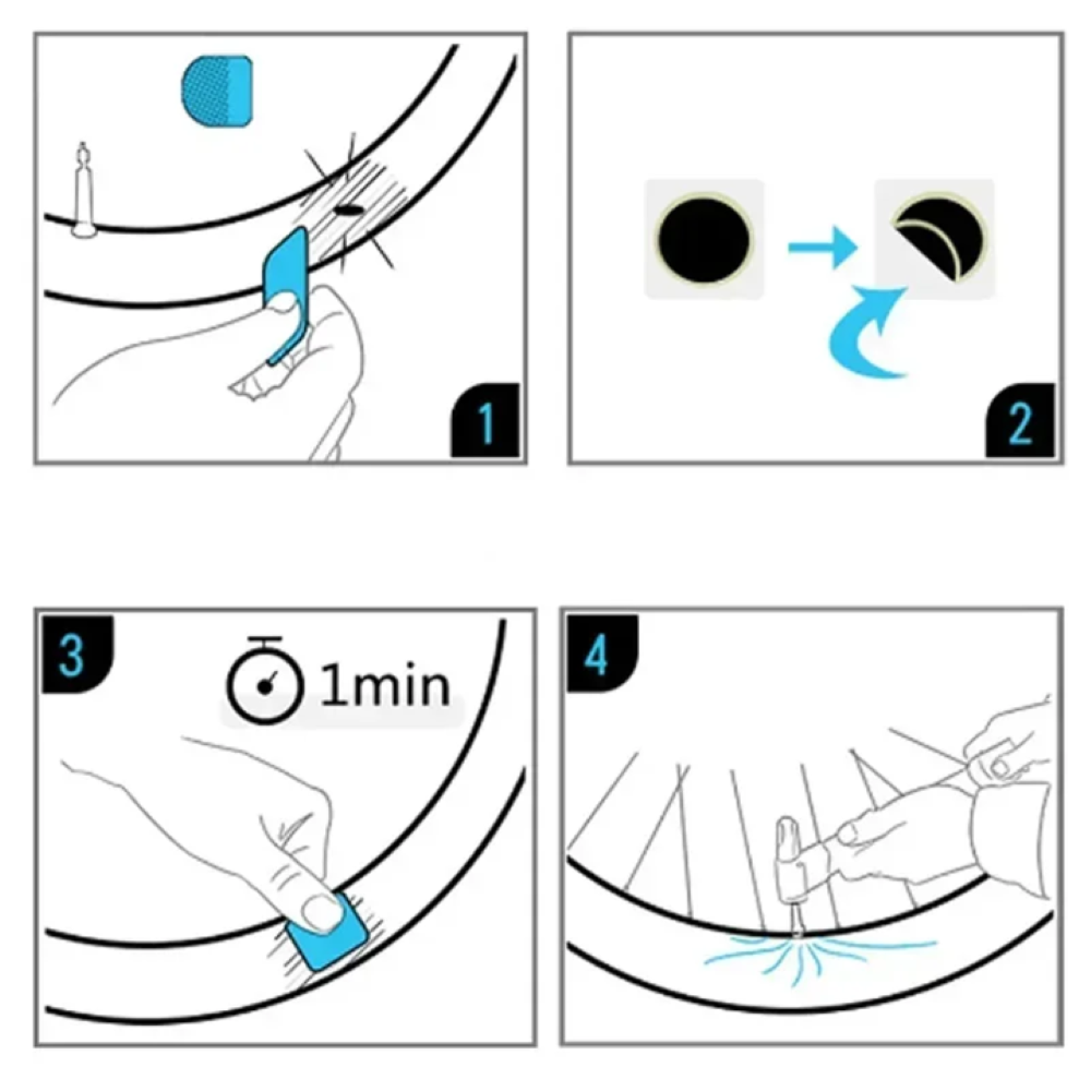 4. Después de permanecer quieto durante 5 minutos, colóquelo en el neumático exterior para inflarlo y completar la reparación del neumático.
