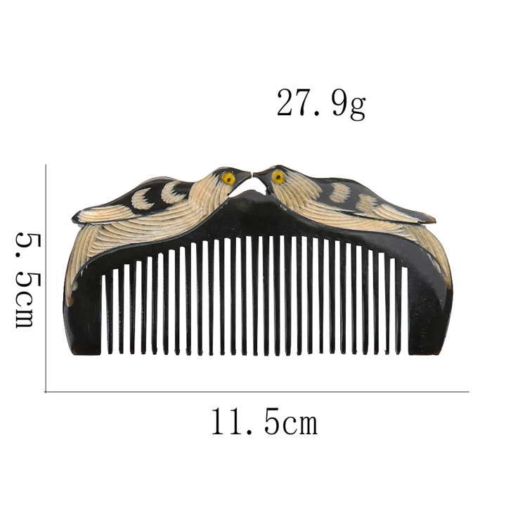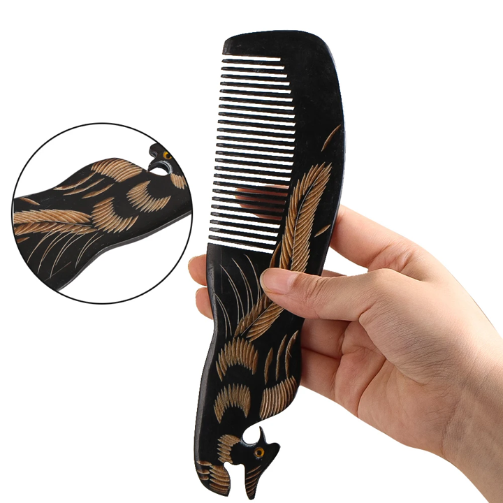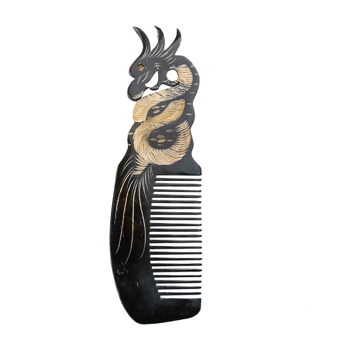Este peine de cuerno de buey natural combina la artesanía tradicional con un diseño respetuoso con la salud. Grabado con motivos chinos simbólicos: Fénix, dragón y pato mandarín, este peine no es solo una herramienta para el cuidado del cabello, sino también un regalo significativo para las mujeres que valoran el bienestar y la belleza.