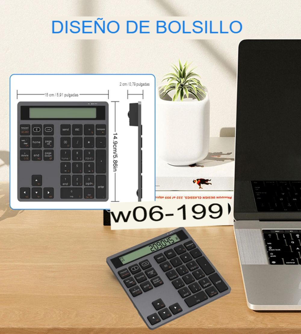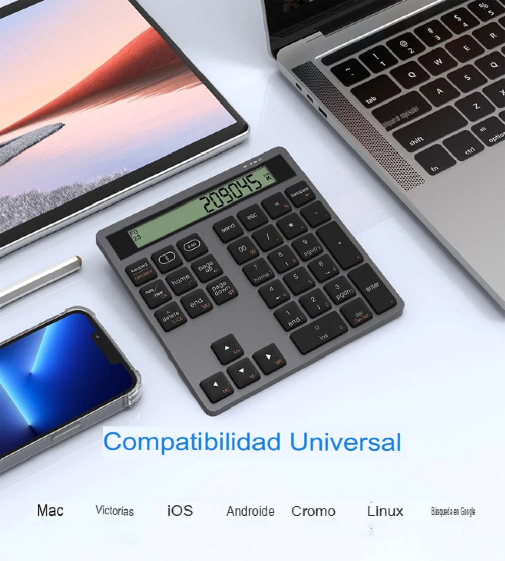 Amplia compatibilidad: Totalmente compatible con Windows, iOS, Android, Mac, Chrome OS, Linxux, Google. El diseño elegante combina exactamente con su Macbook, MacBook Air / Pro, iMac, PC, surface pro, teléfono inteligente, computadora portátil o escritorio como teclado numérico inalámbrico externo lateral.